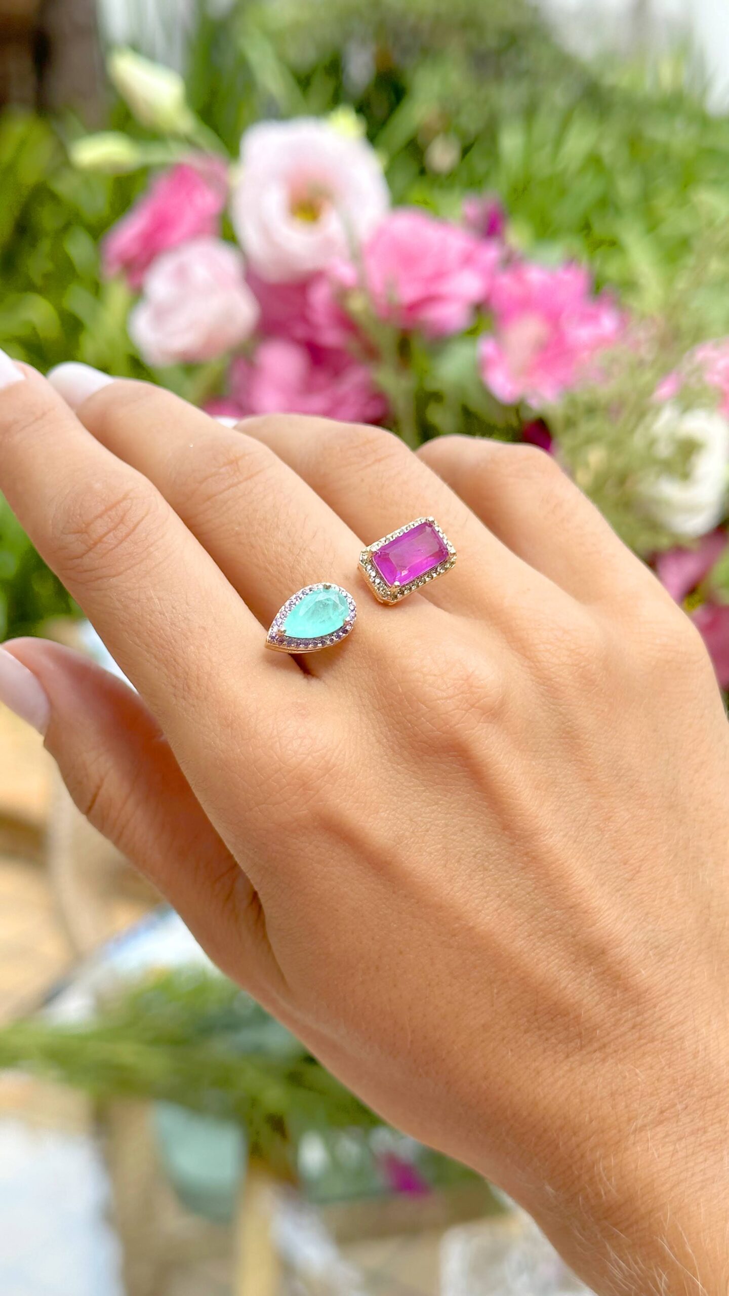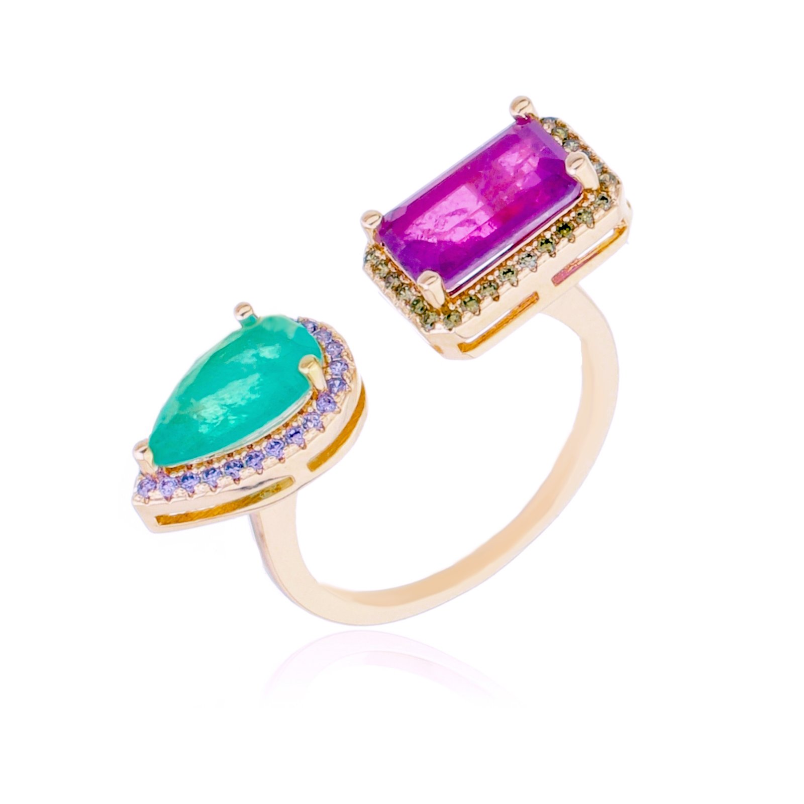 Anel Fusion Ametista Oval Cravejado em Garras Banho de Ouro 18K