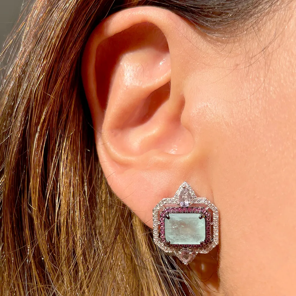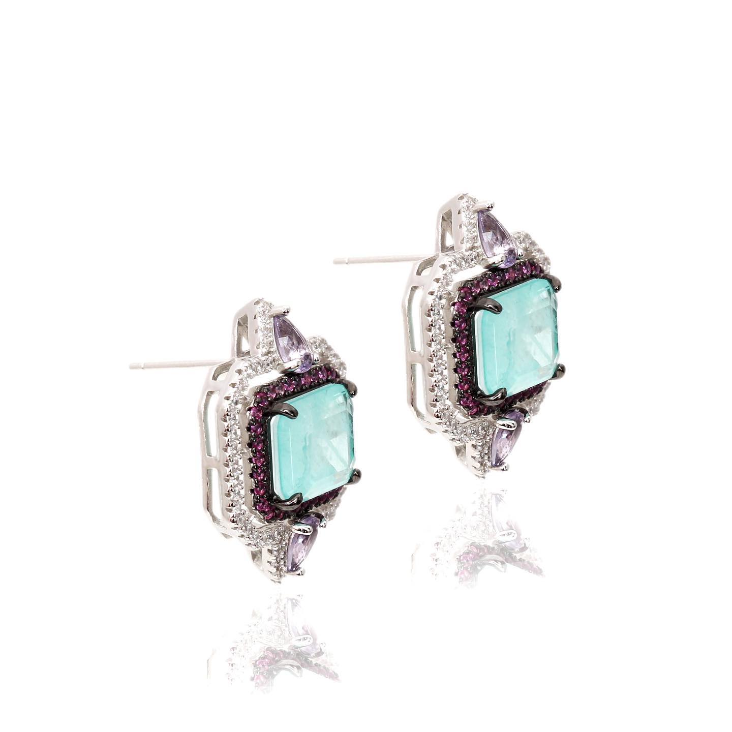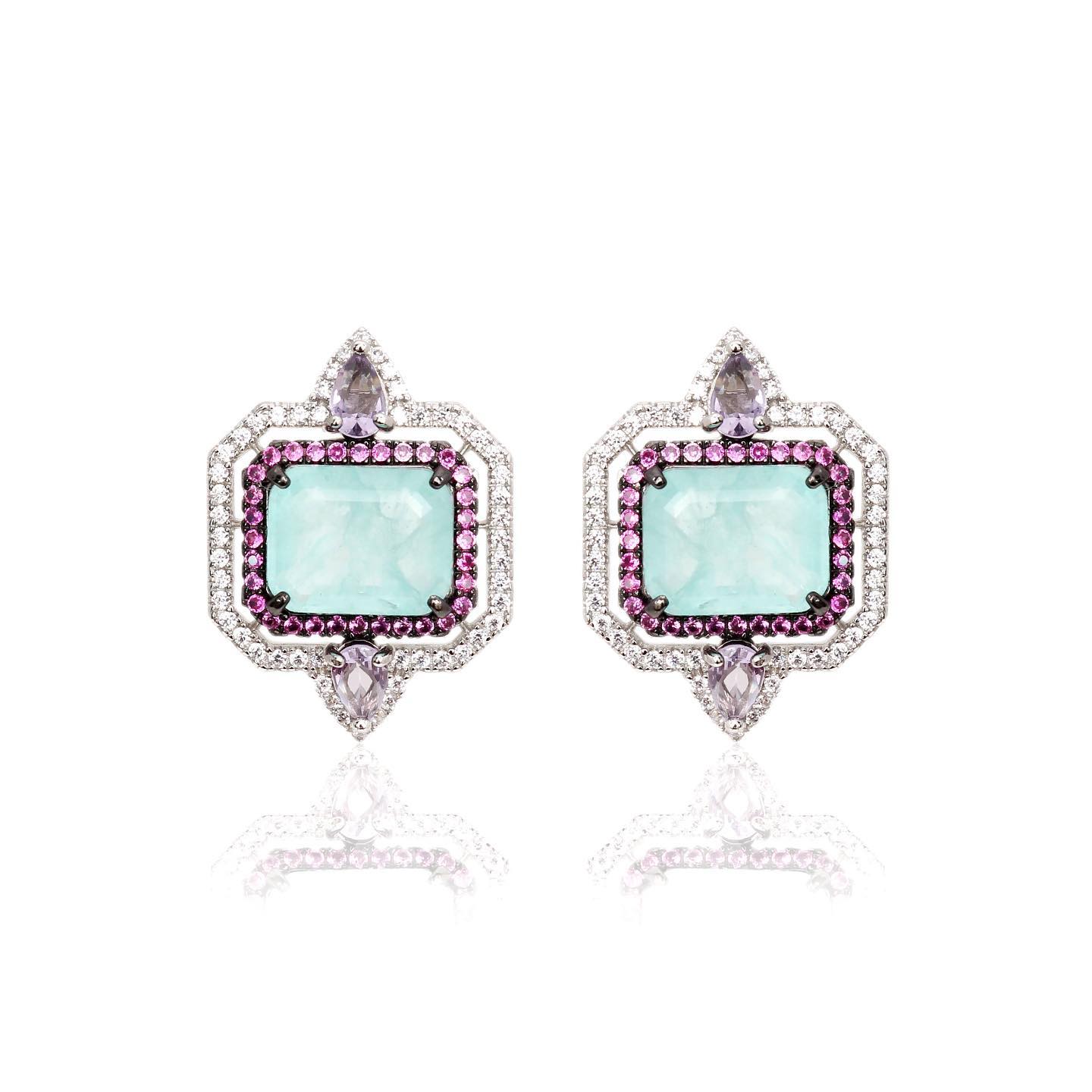 Brinco Fusion Turmalina Light Moldura Prata 925