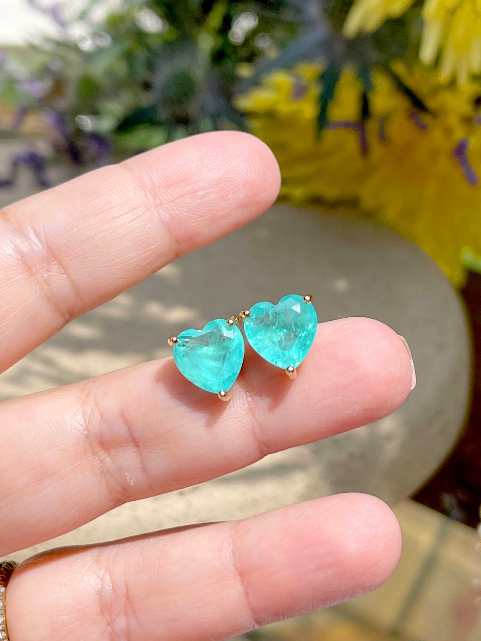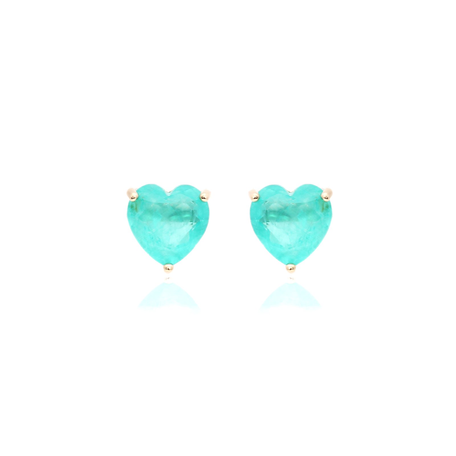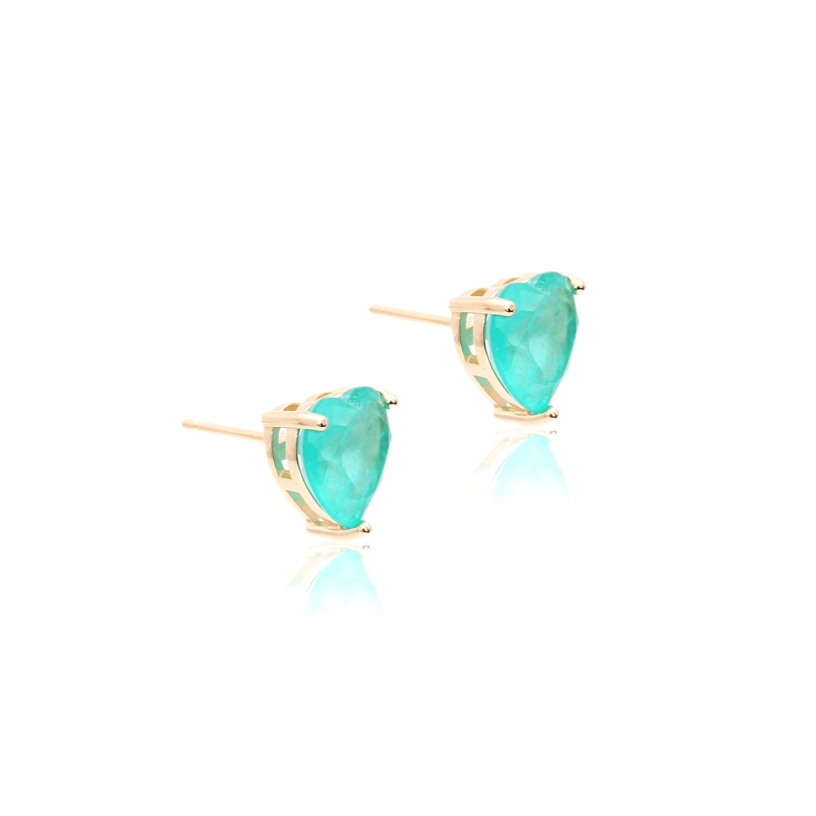 Brinco com design delicado de coração de cristal morganita verde e detalhes vazados nas laterais.