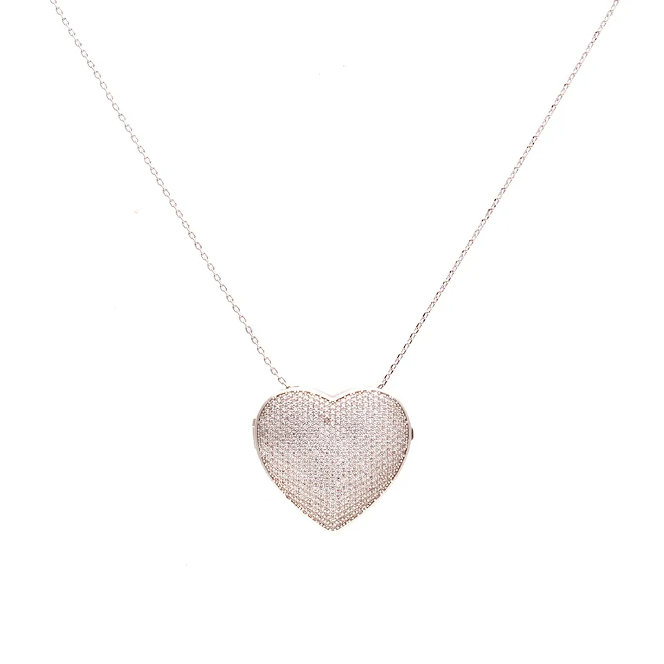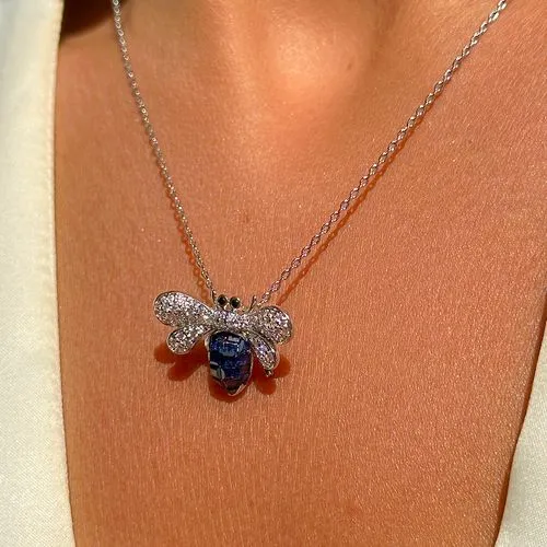 Colar Abelha Mosaico cravejada Cristal Safira Banho de Ródio Branco