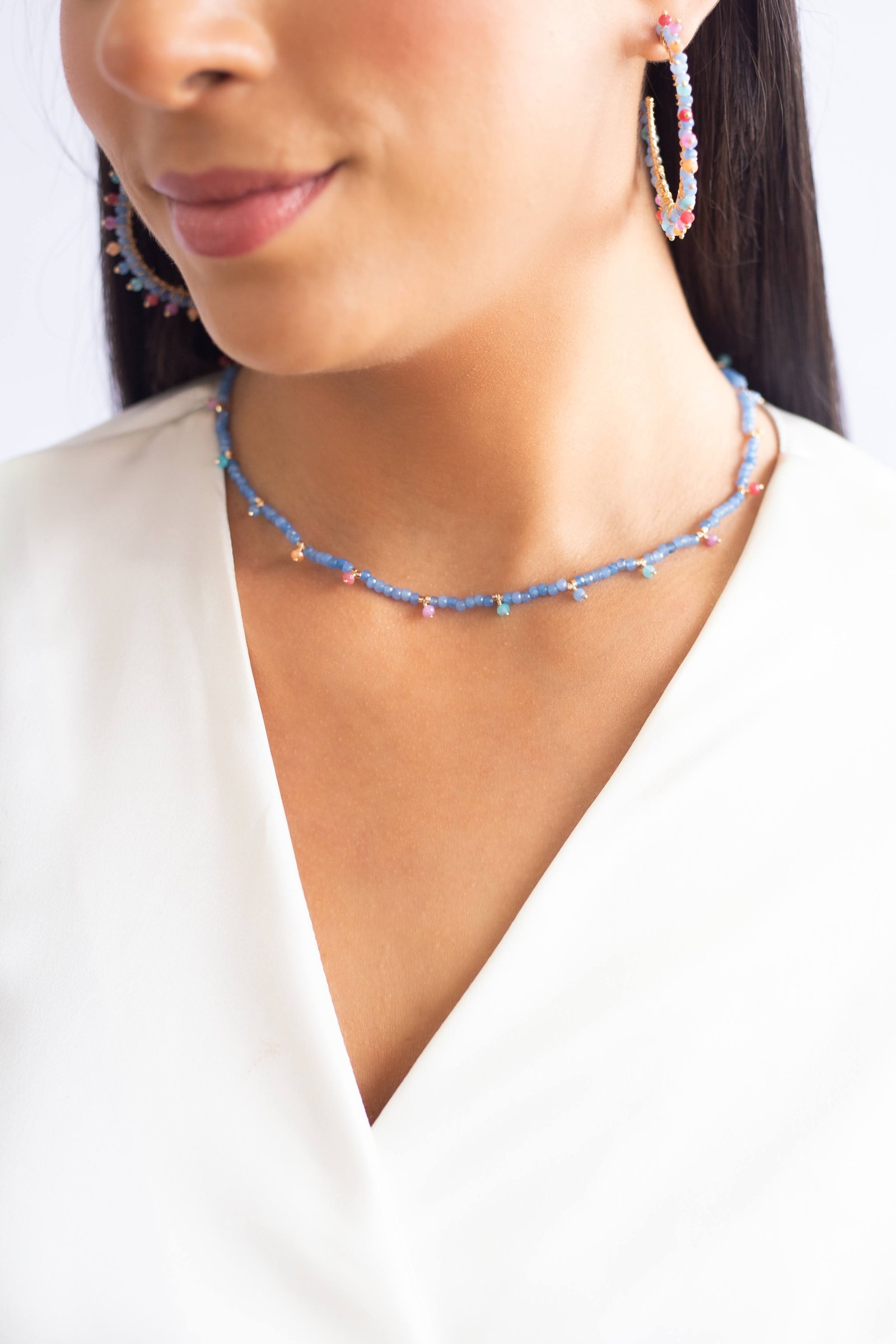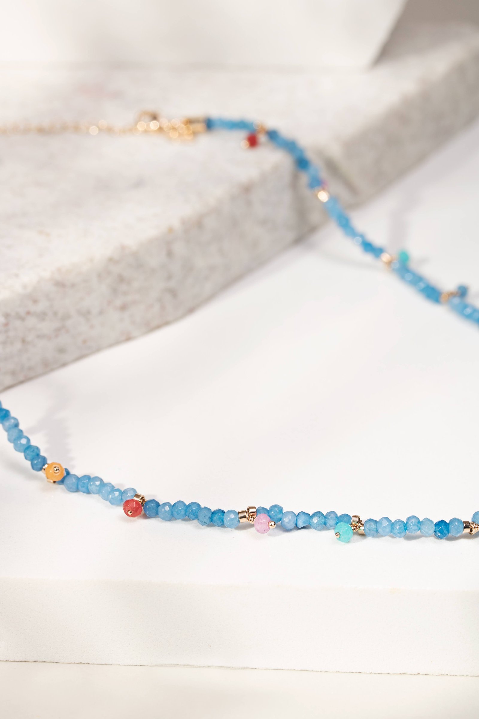 Colar com pedras naturais jade nas cores: vermelho, goiaba, rosa, azul e verde. fecho lagosta.