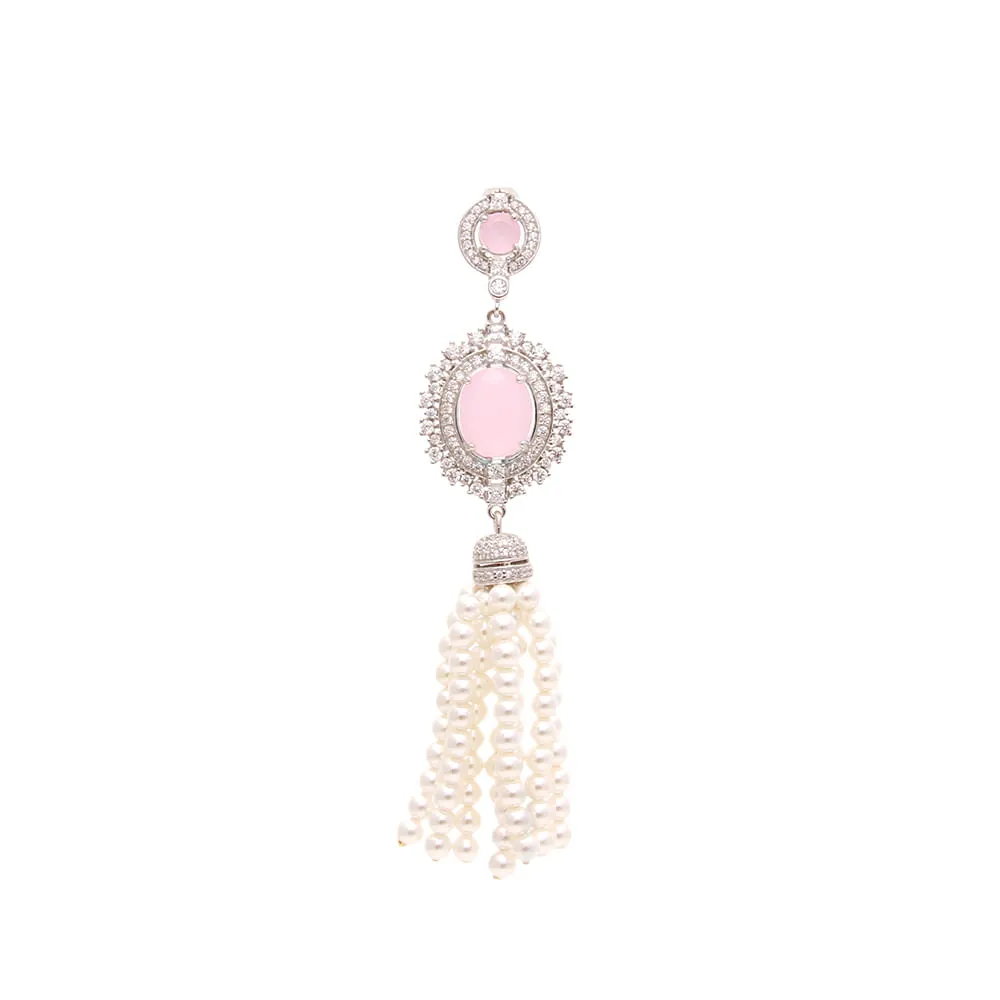 Pingente cristal quartzo rosa perola zirconia branca espelho com tassel